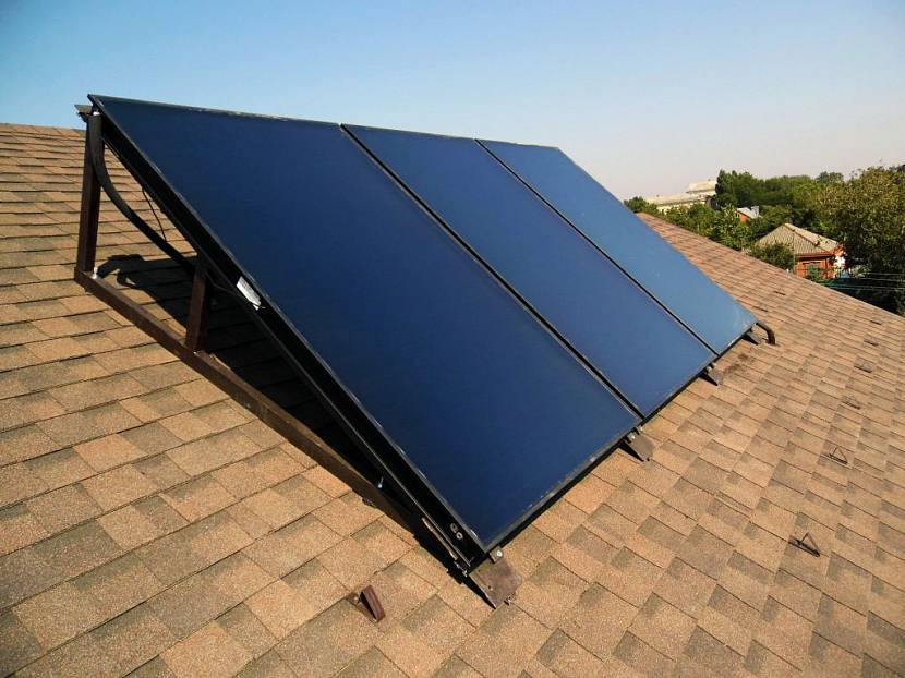Наибольшей популярностью пользуются солнечные коллекторы для нагрева воды. Принцип действия таких конструкций заключается в пропускании жидкого носителя по покрытым черной краской трубкам сквозь прозрачный сверху ящик, с качественной термоизоляцией снизу и по бокам. В некоторых случаях используется триплекс, который лучше удерживает температуру внутри коллектора. Солнечные лучи очень быстро нагревают жидкость, при этом тепло не теряется, а наоборот, накапливается. Дальше вода может быть направлена в коммуникации горячего водоснабжения или же в замкнутую систему отопления.