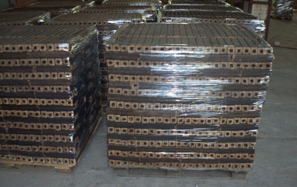 На выходе получаются брикеты, по внешнему виду напоминающие кирпич.