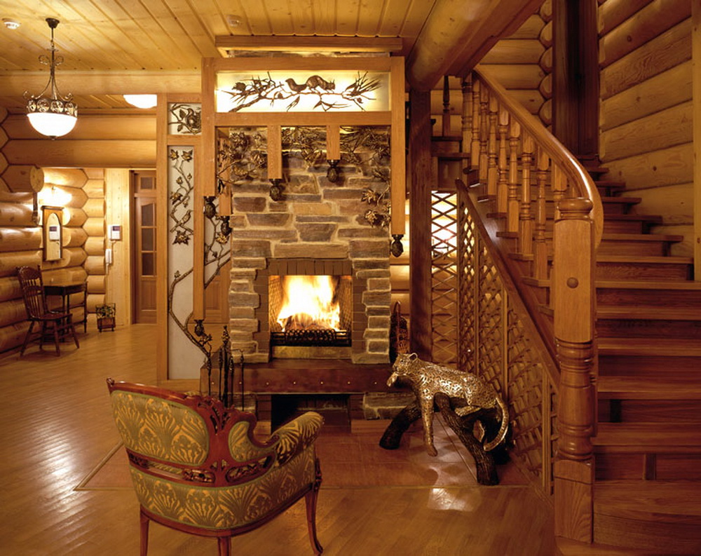 Внутренняя отделка дачи в изысканном и аутентичном стиле шалеИсточник kir-dizain.ru
