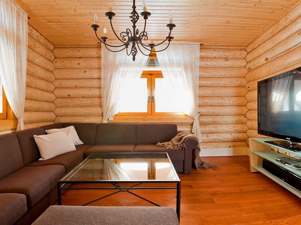 Если дача сконструирована из бруса либо бревна, то они одновременно и будут служить интерьерным фоном внутри строения. Зашивать их гипсокартоном или другим материалом нет смысла. Наоборот, такие стены идеально подходят для обустройства комнат в стиле шале, кантри, русском или сельский прованс (если побелить бревна).