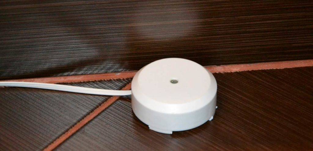 При внутреннем расположении устройства его контакты размещают на 3-4 мм выше уровня покрытия, что позволяет исключить срабатывание при случайном разбрызгивании воды или уборке. Соединяющий провод укладывают в гофрированную трубу, непроницаемую для воды. Производители гарантируют эффективность работы системы даже в том случае, когда определитель удален от управляющего модуля на 100 м.