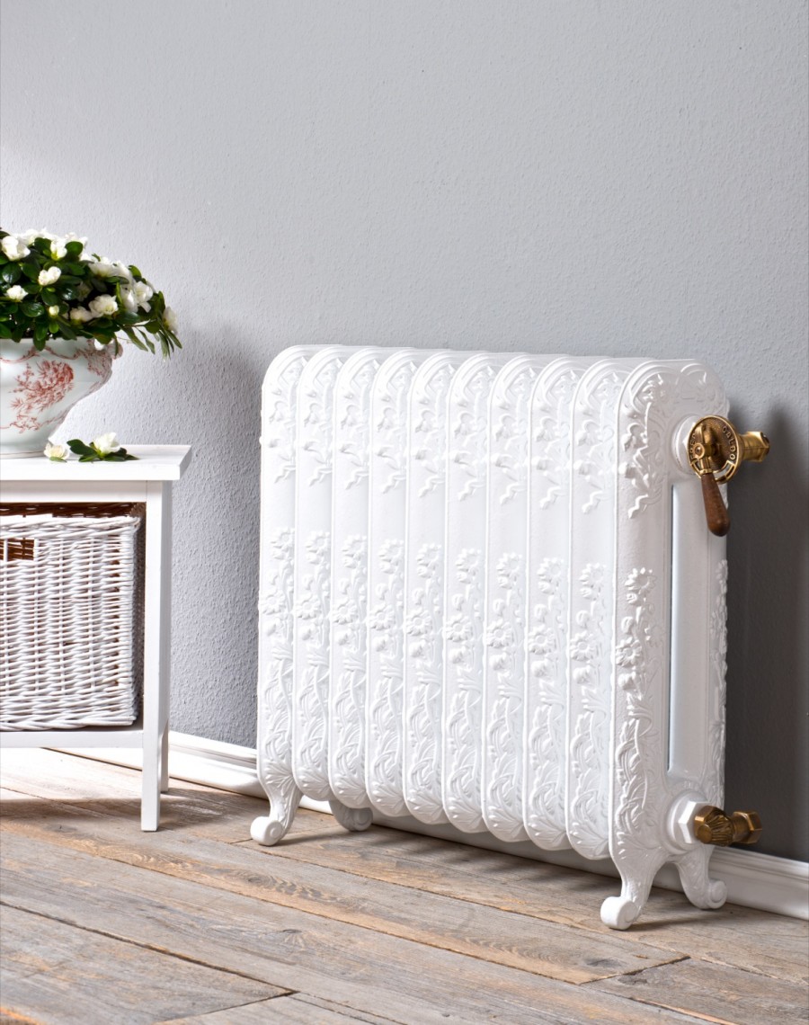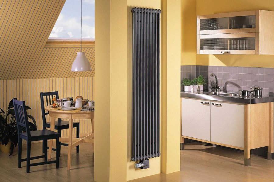 - Мощность батареи — декоративные радиаторы продаются в большом диапазоне мощностей: от 800 Вт вплоть до 4000 Вт. Но эти цифры ничего нам не говорят о том, сколько радиаторов нужно ставить в каждую комнату. Чтобы правильно подобрать мощность батареи к размерам комнаты, следует научится читать характеристики устройства и уметь считать мощность на метр площади. Учитывайте, что эффективная мощность зависит от параметров отопительной установки. Производители чаще всего представляют точное распределение. В случае многоквартирных домов стандартные параметры: 75/65/20 градусов по Цельсию. Однако, в ванной комнате нам нужно получить немного более высокую температуру (в среднем около 23 градусов по Цельсию), поэтому потребность в тепле варьируется от примерно 110 Вт / м2 для ванной комнаты без окон до 150 Вт / м2 в ванной комнате с окном. Нетрудно подсчитать, что ванной комнате без окон площадью 8 м2 потребуется радиатор мощностью примерно 880-900 Вт, а для комнаты с окнами примерно 1200 Вт. Для кухни, гостиной и спальни (в зависимости от количества окон) следует подбирать мощность от 80 до 100 Вт / м2. Поэтому, если мы хотим купить радиатор для комнаты площадью 15 м2, его мощность должна составлять от 1200 до 1500 Вт;