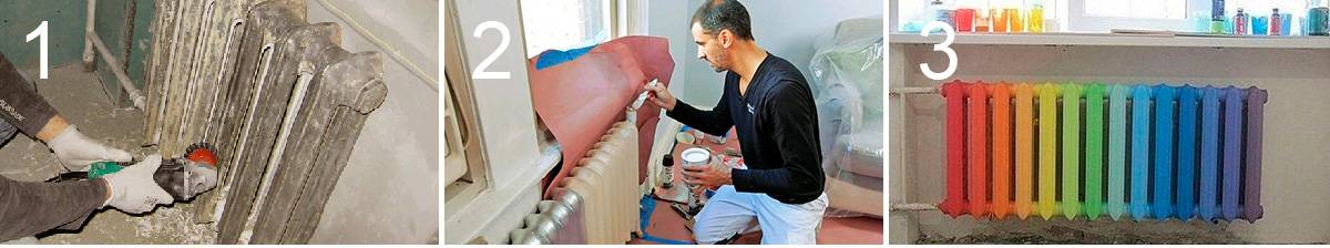 Для реставрации батарей отопления сначала очистите его от старого покрытия и ржавчины, а уже потом наносите выбранную краску.