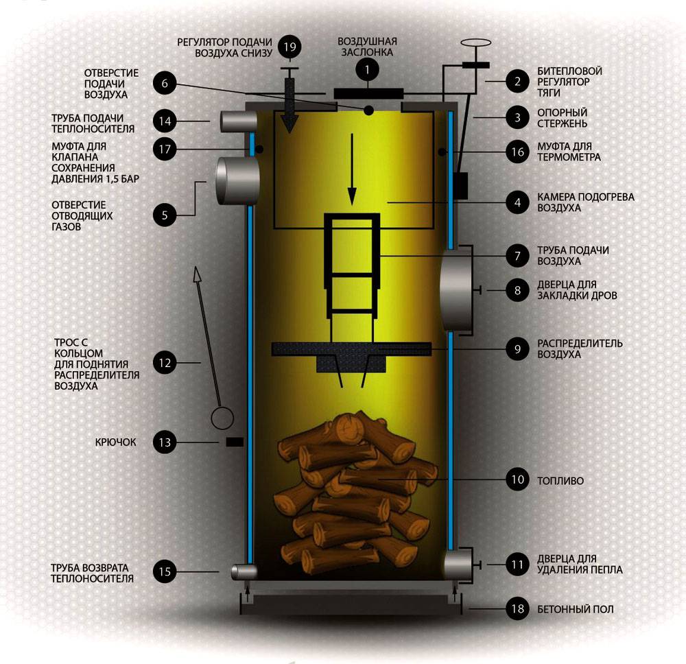 Как сделать твердотопливный котел длительного горения своими руками: чертежи, видео