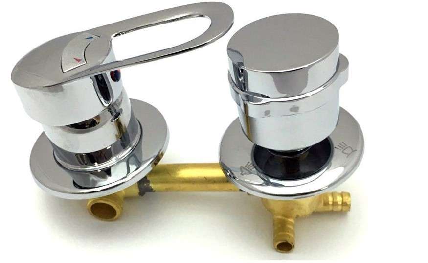 Трубы для подвода горячей и холодной воды монтируются в сантехнической нише. При выборе смесителя для внешнего монтажа креплением смесителя являются сами резьбовые фитинги на выходах трубопровода. При выборе модели скрытой инсталляции следует учитывать габариты рабочего узла, который располагается непосредственно в сантехнической нише. В кабину выводятся только управляющие элементы и излив, если таковой предусмотрен конструкцией смесителя.