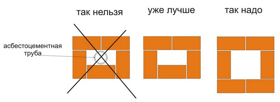 - При помещении асбеста внутрь канала из кирпичной кладки применяют дополнительные распорки из арматуры;