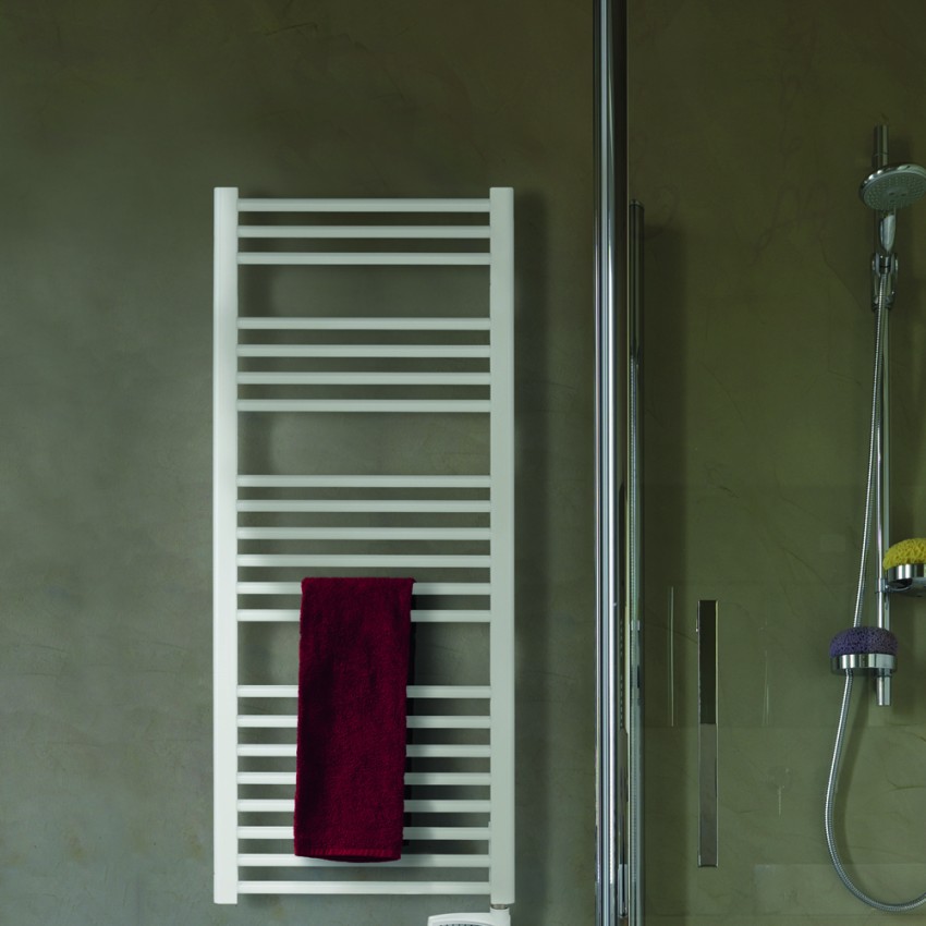 Сушки с ТЭНом отличаются обычно большей мощностью и могут использоваться в качестве основного нагревателя, да и, вообще, сушат быстрее. Но у них имеются ограничения по конфигурации труб. Необходимо, чтобы теплоноситель без труда циркулировал внутри. Поэтому такие полотенцесушители имеют замкнутый контур из труб в виде «лесенки» и обычно достаточно высокие, вертикальные отрезки труб, как правило, более длинные, нежели горизонтально расположенные.