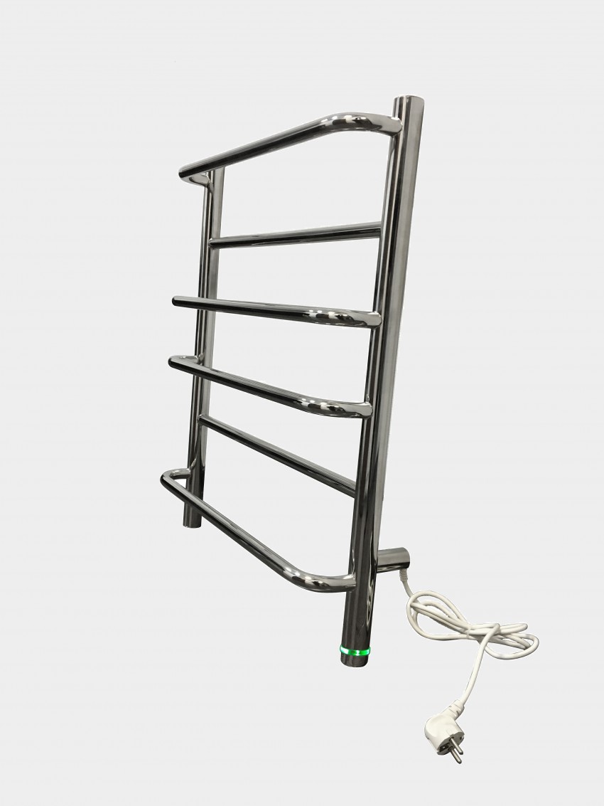 Полотенцесушитель водяной из нержавеющей стали – самый дешевый представитель рейтинга. Изготовлен в форме лесенки с 5 секциями. Стойка прибора оборудована сбоку 2 патрубками, которые необходимы для подключения. Уровень теплоотдачи составляет 230 Вт, толщина стенки – 2 мм, рассчитан на обогрев 2,3 м2. Укомплектован телескопическими креплениями, краном Маевского, заглушкой. По инструкции подключать прибор нужно к системе горячего водоснабжения.