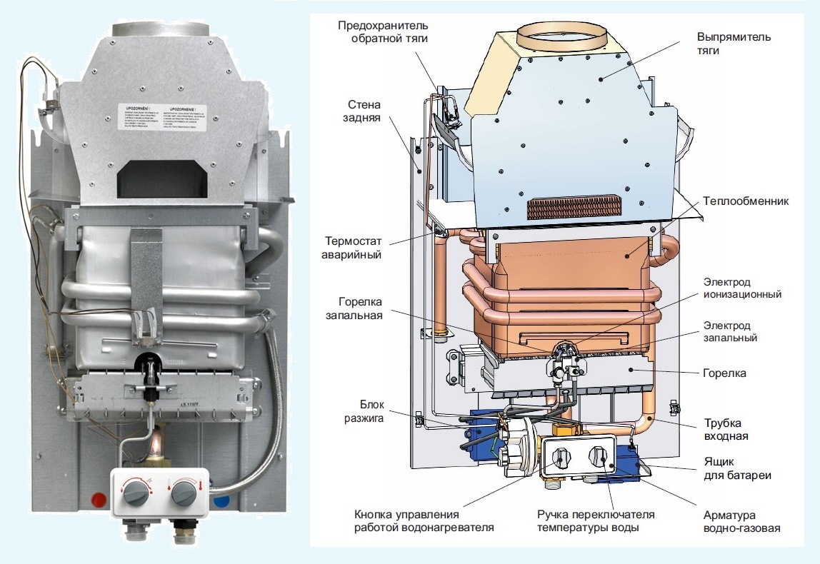 Все газовые приборы отличаются высокой безопасностью, поэтому, если водяной поток отсутствует, газовый клапан не срабатывает и продукты сгорания не проникнут в помещение.