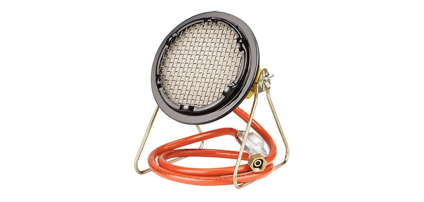 Инфракрасные приборы для обогрева отдельных площадок, открытых веранд или зон отдыха становятся востребованными. Отопительная конструкция представлена в виде цилиндрической стойки, внутренним шлангом для соединения баллона и горелки. Для эксплуатации предусмотрено управление с датчиком, контролирующего горение. О безопасности позаботится специальный клапан. Мощность составляет 4,2 кВт, позволяющая обогревать 20−25 кв. м.