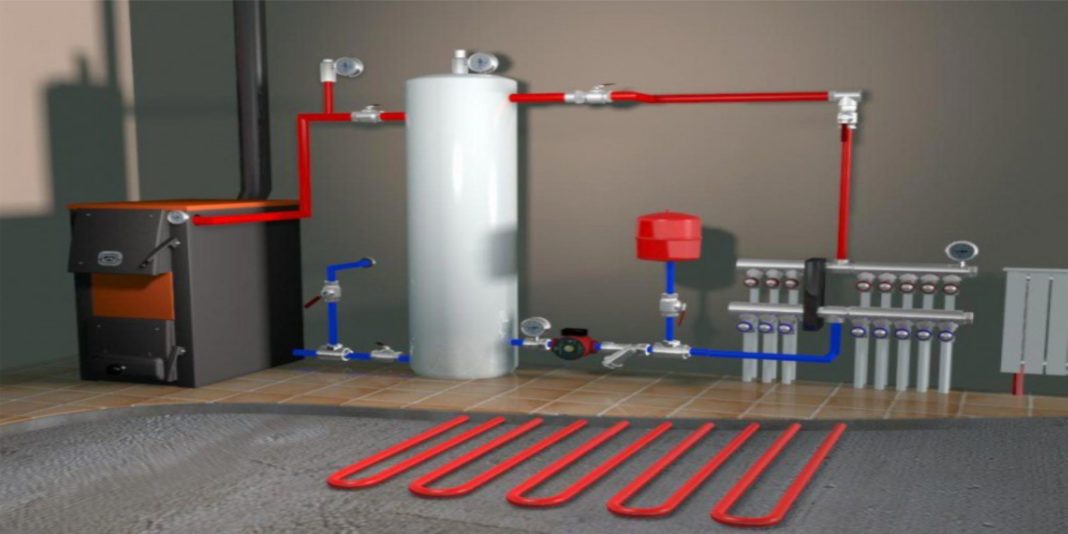 Второй нюанс касается твердотопливных котлов. Когда у вас смонтирован именно он, для прямого подключения к теплым полам, вам потребуется еще и буферная емкость.