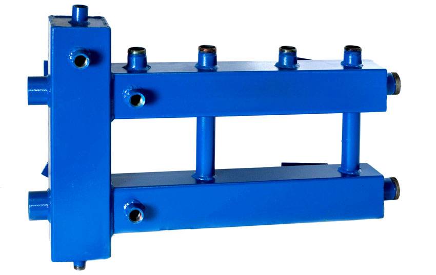 Конструкция сварного коллектора достаточно проста. К гребенке, представляющей из себя трубу круглого или квадратного сечения, подключают необходимое количество патрубков, которые, в свою очередь, подсоединяются к индивидуальным линиям контура обогрева. Сама коллекторная установка сопрягается с главным трубопроводом.
