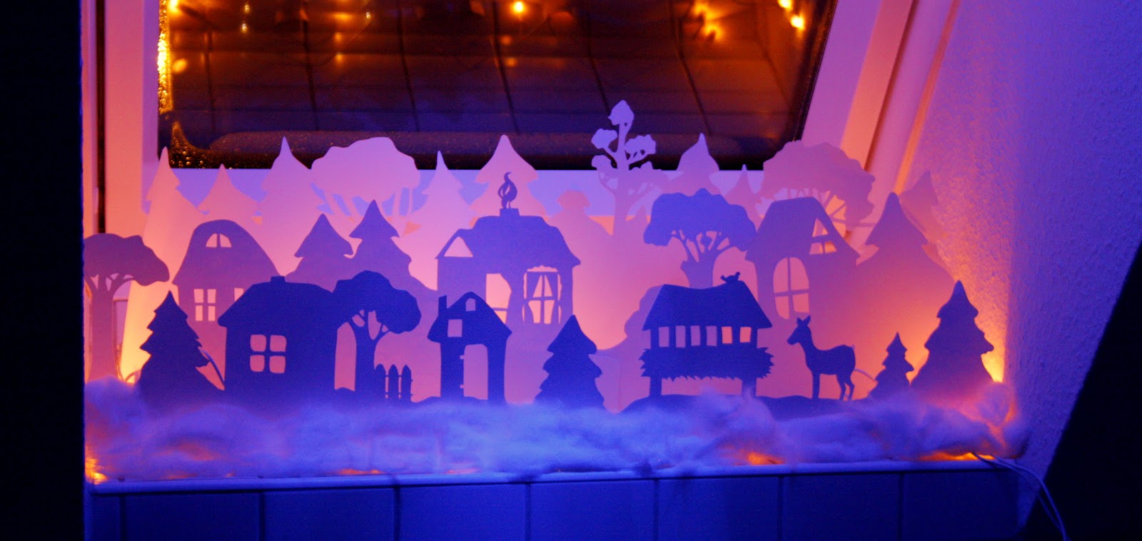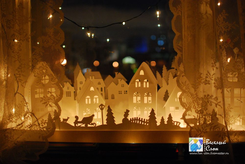 Впечатляющие бумажные панорамы, которые светятся, — новый способ украсить проемы окон перед праздниками. На создание подобных композиций требуется время, однако это того стоит. А инструменты понадобятся обычные: