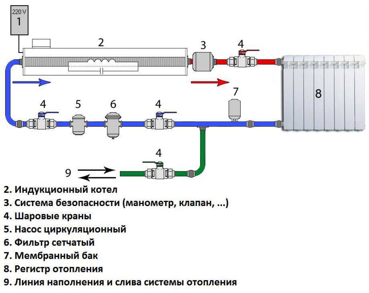Современные отопительные агрегаты на основе индукции состоят из следующих элементов: