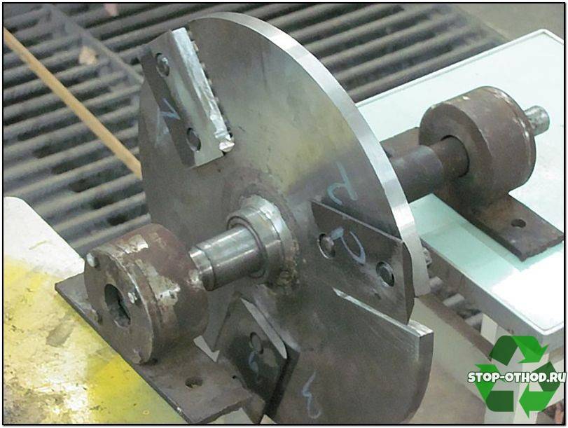 Для крепежа ножей подготавливаются отверстия. Щепорез своими руками можно собрать с применением готового диска. В любом случае диск одновременно будет являться маховиком.