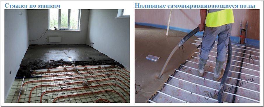 Для водяного теплого пола используется как традиционная цементно-песчаная стяжка по маякам, так и наливные полы