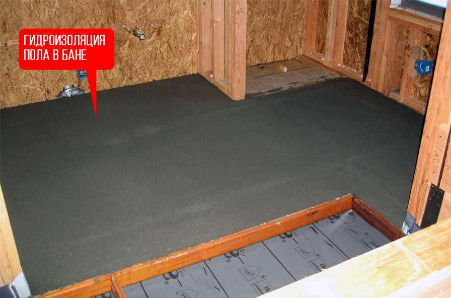 Делая стяжку, проверяют ровность поверхности и уже на очищенную, засохшую смесь наносят гидроизоляционную мастику в несколько слоев. Также укладывается тонкая мембрана или плотный рубероид в виде рулонов.