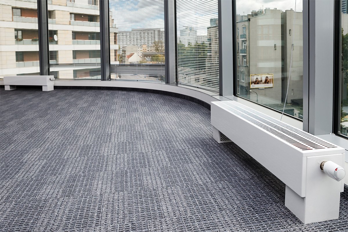 - Оптимальный размер расположения внутрипольных конвекторов с вентилятором от окна составляет 25-30 см.