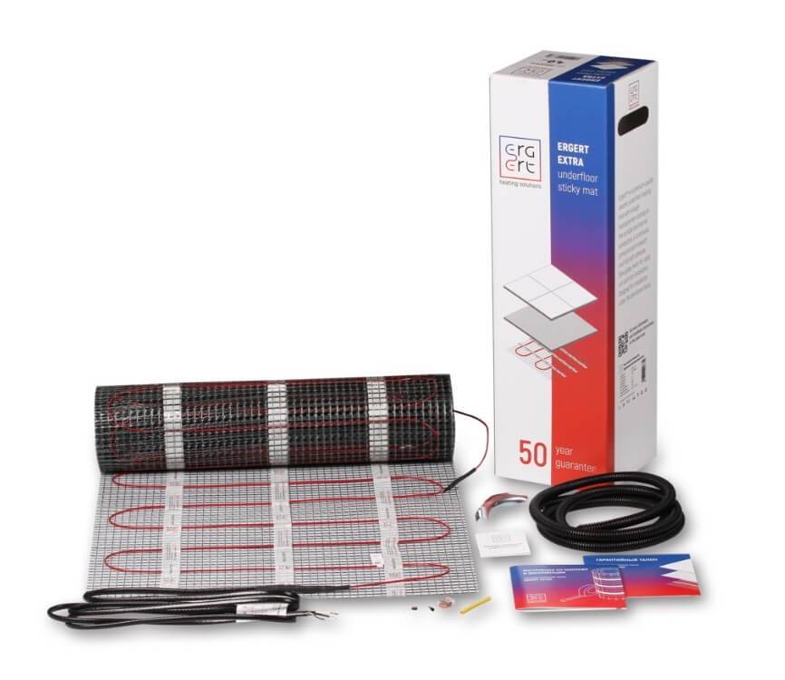 Нагревательный мат состоит из тонкого двухжильного кабеля, уложенного на сетке из стекловолокна. Двойной экран не только защищает от повреждений электрическим током, но и дает распространяться электромагнитному излучению. Допустима укладка в цементно-песчаную стяжку толщиной 2 см или в слой плиточного клея. Гарантийный срок использования: 16 лет. Произведен в России.