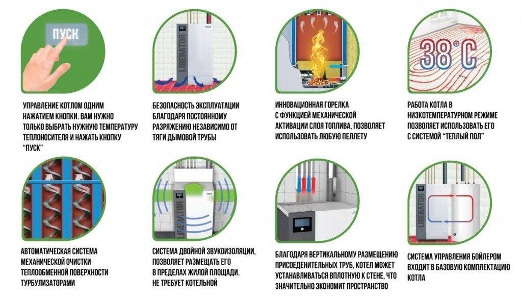 Описываемое оборудование имеет автоматическую систему зажигания, а также является пожаробезопасным. Потребитель будет иметь возможность снизить расходы за счет незначительной стоимости пеллет. Помимо прочего, на обслуживание не потребуется тратить дополнительных средств. Вы можете рассчитывать на высокий коэффициент полезного действия, а период эксплуатации подобного оборудования составляет 20 лет, что будет зависеть от правильности изготовления и эксплуатационных особенностей. Устройство не зависит от центральных источников отопления и тарифов на такие услуги.