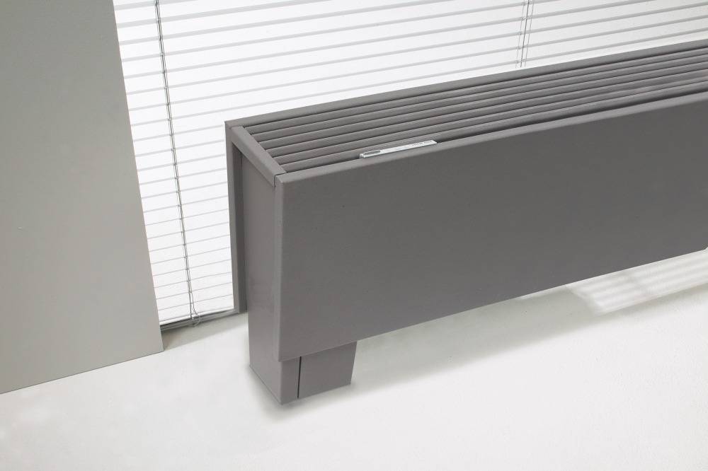В этих революционных по практичности и эстетичности обогревателях единственным видимым глазу элементом является верхняя решетка: из обширного доступного ассортимента несложно выбрать максимально совпадающую с типом и цветом пола. Решетки могут быть деревянными, алюминиевыми и из нержавеющей стали, возможна их окраска в 39 различных оттенков.