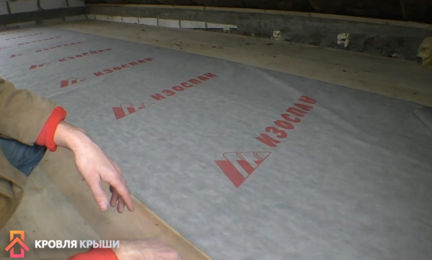 При укладке гидробарьера, важно положить его гладкой стороной к верху, затем стыки проклеить скотчем. После того как пленочное покрытие уложено, его фиксируют контррейками, к которым прибивают обрешетку.