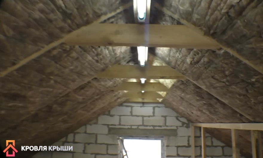 - монтируется поверху стропил настил (можно не такой плотный, как для керамзита);