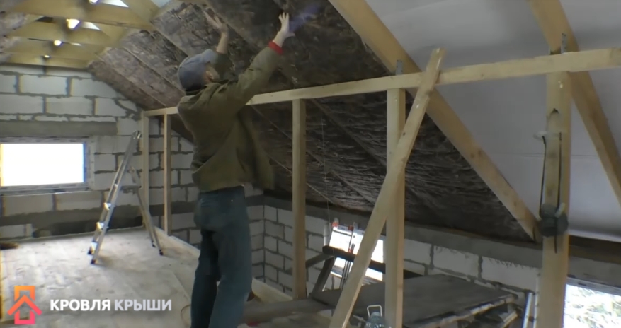 - с теплоизоляцией, которая располагается между стропилами, каркас должен быть вровень с утеплением;