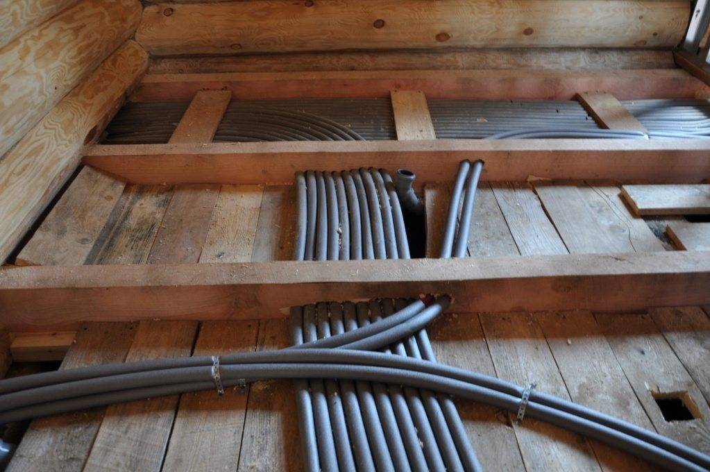 Подводки отопительных приборов будут скрыты настеленным по лагам полом.
