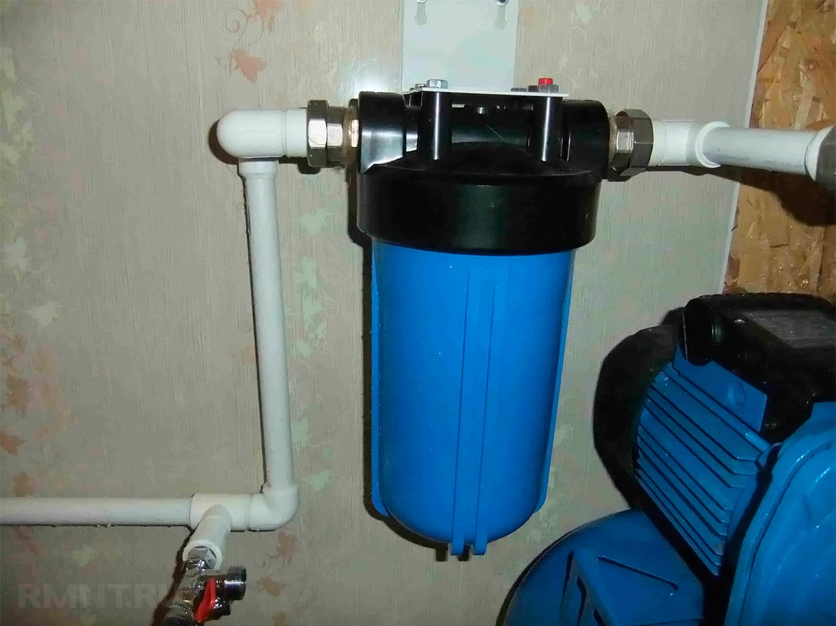 Следующий шаг — установка корпуса фильтра первичной очистки. Он монтируется на стену в месте, удобном для обслуживания. Большинство таких фильтров самоочищаемые. Периодичность обслуживания зависит от качества воды в регионе. Обслуживание сводится к промывке картриджа и освобождение колбы от осадка. Образец такого фильтра представлен на фото ниже.