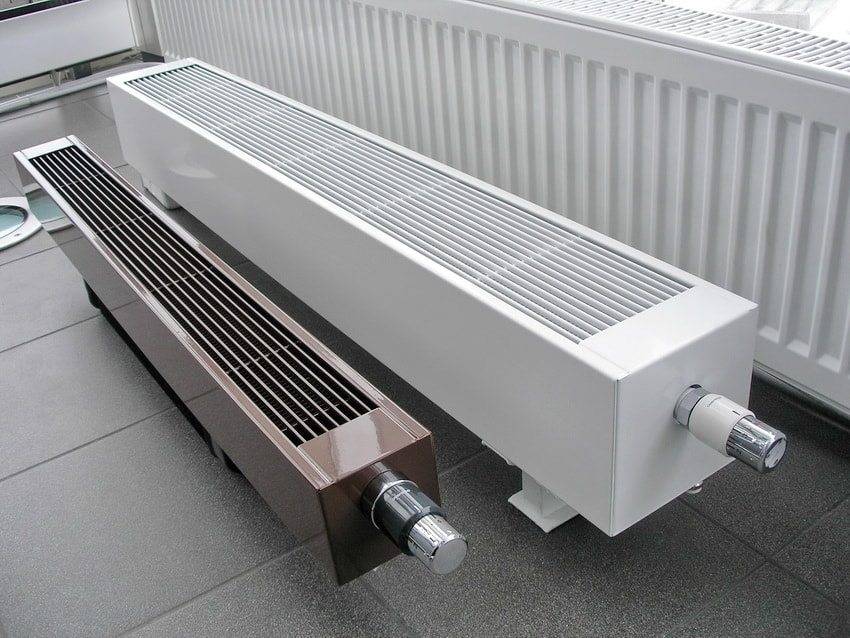 Также есть низкие и длинные приспособления, которые в народе прозвали “теплый плинтус”. Именно на место плинтуса они и монтируются, сочетая незаметность и равномерный охват площади.