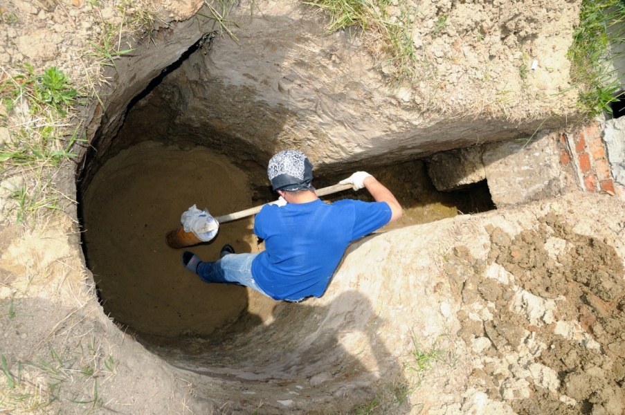 - Снова выкапывают яму, подходящую под размер и форму камеры.