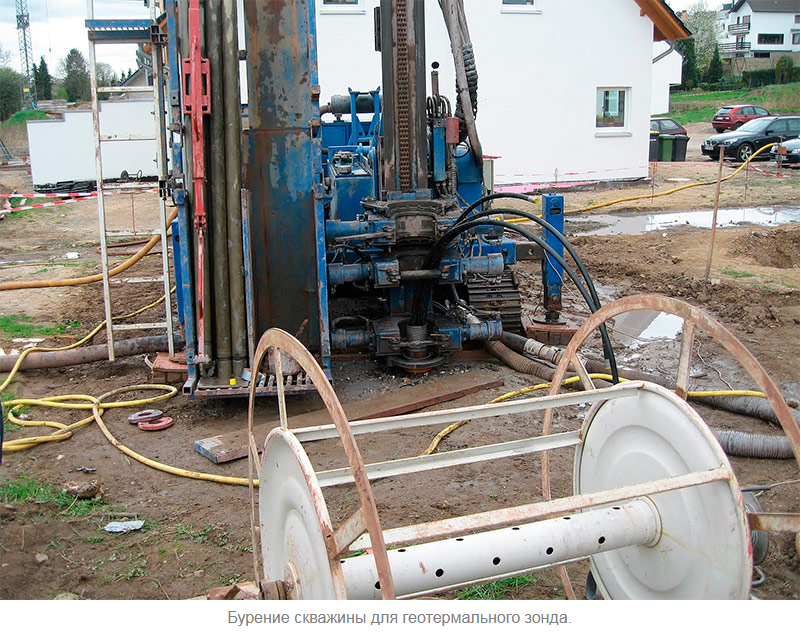 Между скважинами должно быть расстояние не менее пяти метров. Поэтому если участок мал, застроен или засажен, скажем, садом, это лучший способ установки теплового насоса с зондом, когда задействована минимальная площадь надела. С другой стороны цепь горизонтальных приемников тепла можно построить самостоятельно без применения бурового оборудования.