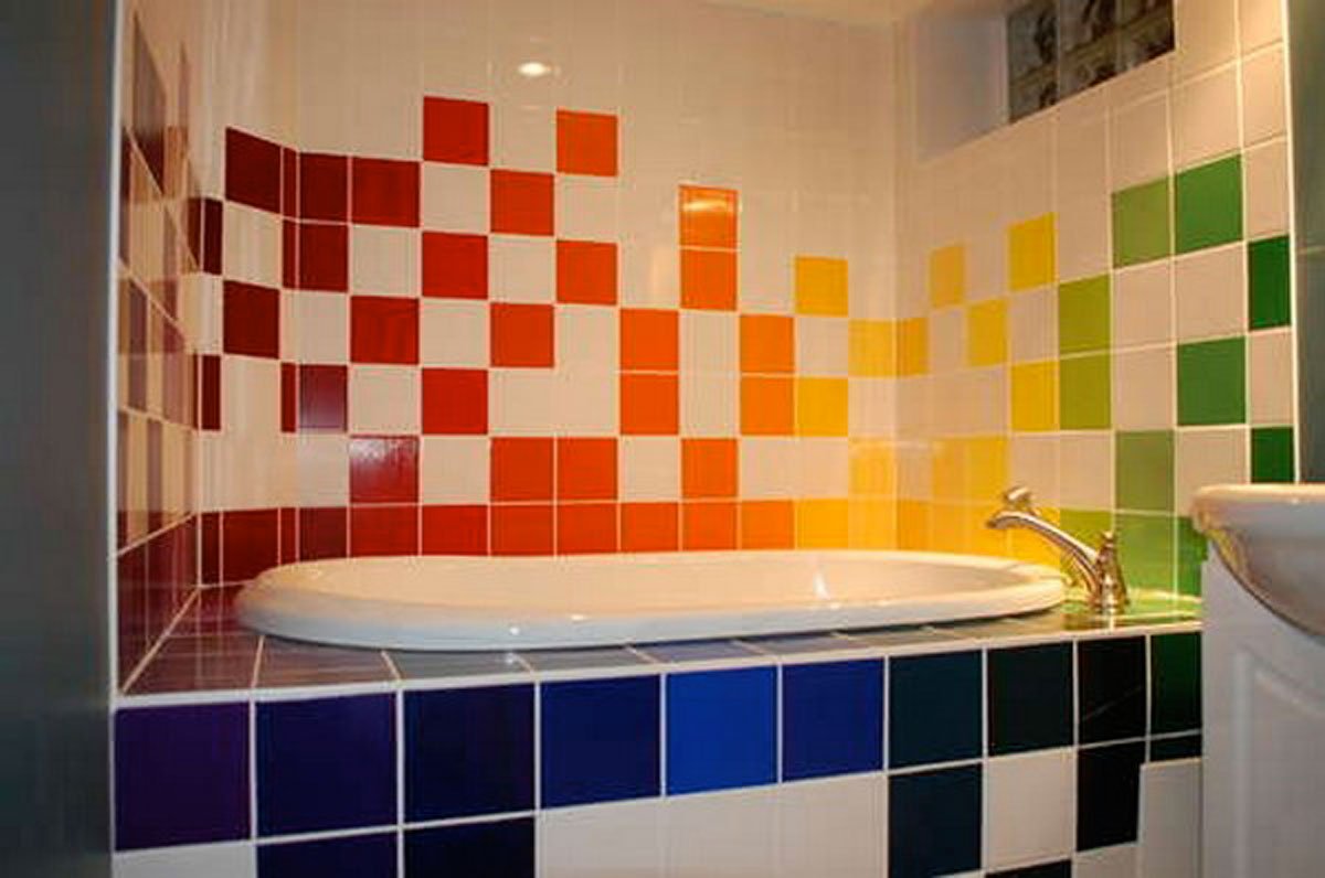 Если привлекательный внешний вид потеряли только некоторые плитки, можно заменить их. Причем не беда, если у вас не осталось такой же плитки, какая уже лежит на стенах. Можно использовать контрастную плитку, выложив на стене орнамент. Правда в этом случае, естественно, придется заменить не только поврежденный элемент.