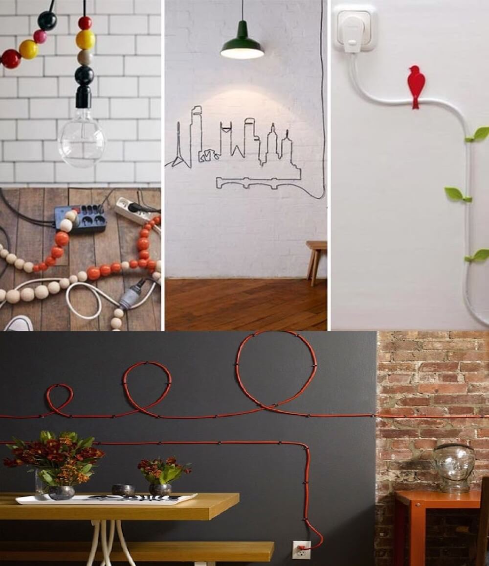 В случаях, когда кабель-канал установить невозможно, на помощь приходят дизайнерские мелочи для интерьера, скрывающие провода. Но это крайнее решение. Очень тяжело подобрать декор, органично вписывающийся в общий стиль кухни.