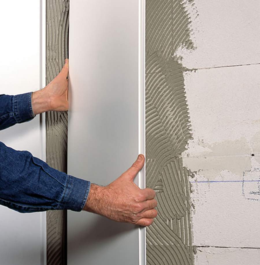 Установка панелей на выровненные стены часто производится на специализированные клеящие составы. В данном случае монтаж обычно осуществляется без сооружения обрешеточной конструкции, поэтому все установочные работы выполняются очень быстро и с минимальными финансовыми вложениями.