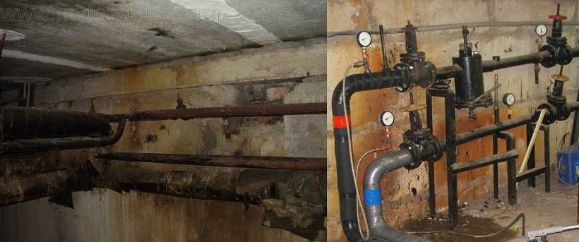 Когда протечка значительна и есть опасность потопа в комнате, действовать надо быстро. Краны, имеющиеся на подводках к радиатору, надо перекрывать невзирая на отсутствие байпаса. Если арматуры нет, то необходимо совершить звонки во все возможные аварийные службы, а затем попытаться перекрыть весь стояк самостоятельно до их прибытия. Для этого придется спуститься в подвал дома и отыскать тепловой пункт вашего подъезда. Говоря простыми словами, надо обнаружить 2 вертикальные трубы, идущие вверх от горизонтального коллектора большего диаметра.