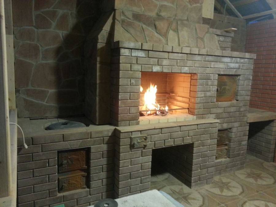 Часто отопительное устройство с лицевой или оборотной стороны оснащают камином (то есть он будет заложен либо в кухне, либо в гостиной). Дымоход может быть объединенным или раздельным. В первом случае образуется единая конструкция, ее легче собрать, материала нужно немного. Но топить можно будет либо печь, либо камин. Раздельные дымоходы не столь экономичны при возведении, но они позволяют одновременно использовать оба способа отопления.
