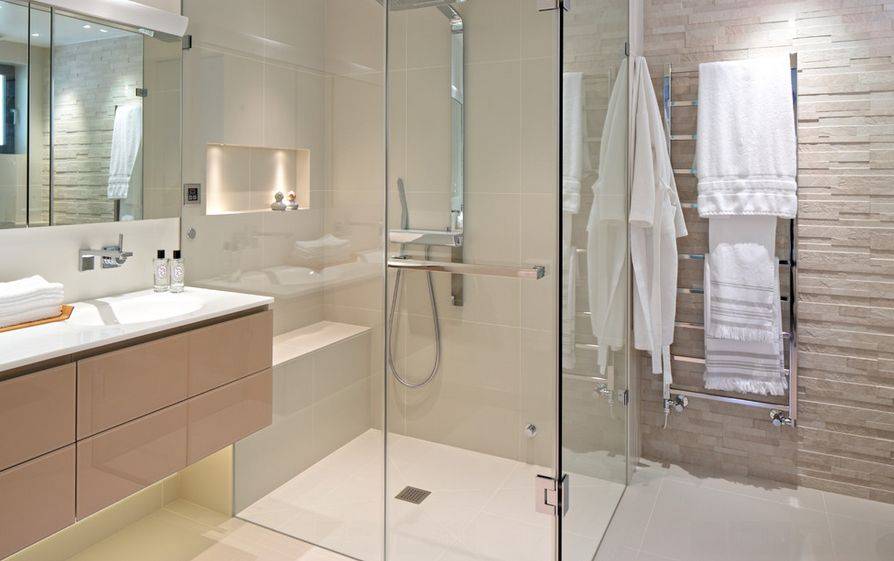 Практичная полка размещена между двумя стенками в кабине. Чаще всего из стекла или металла, с хромированной отделкой, предотвращающей ржавчину. Его можно установить на любой высоте, это позволяет сэкономить место в салоне.