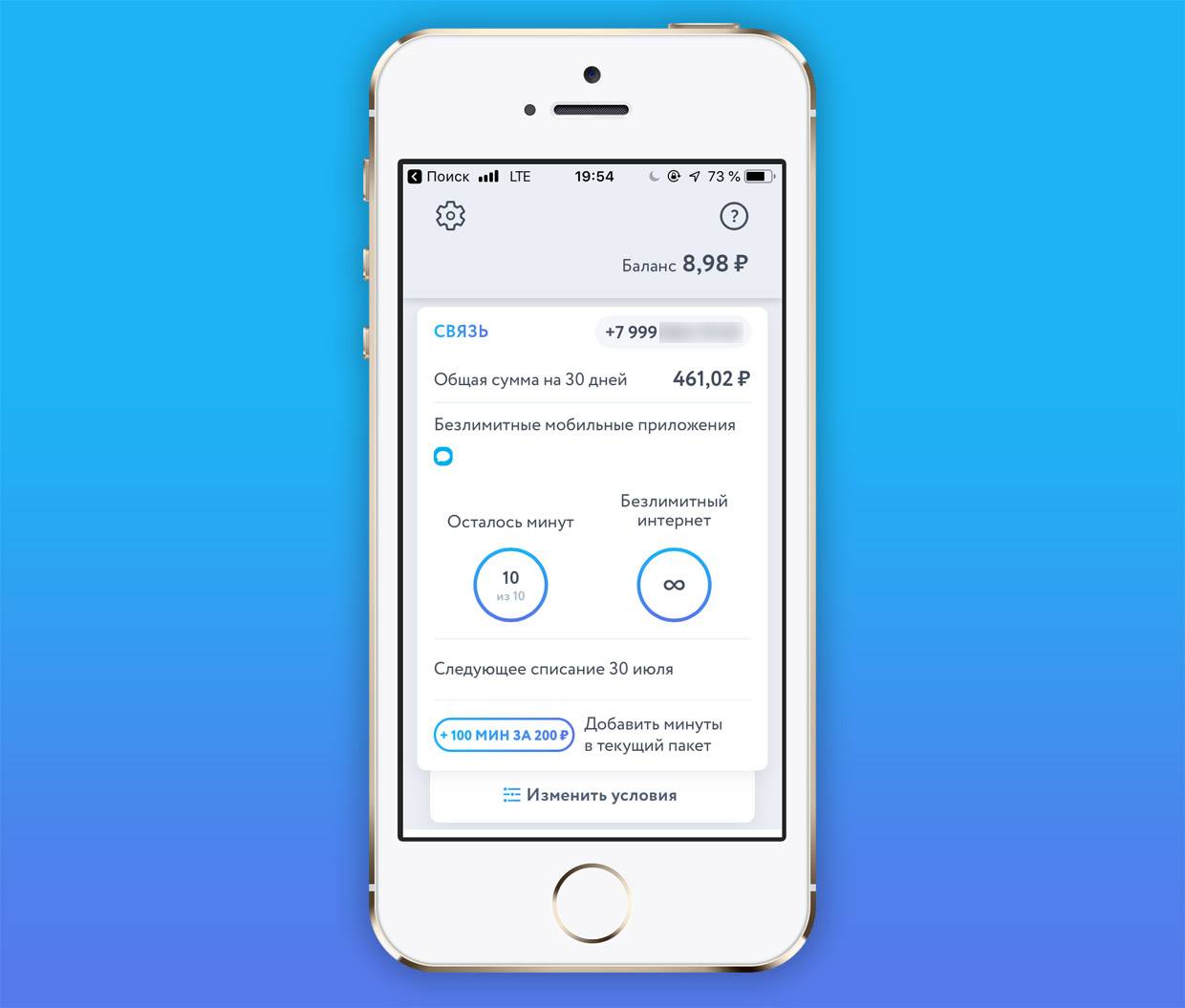 - Смена настроек тарифного плана.