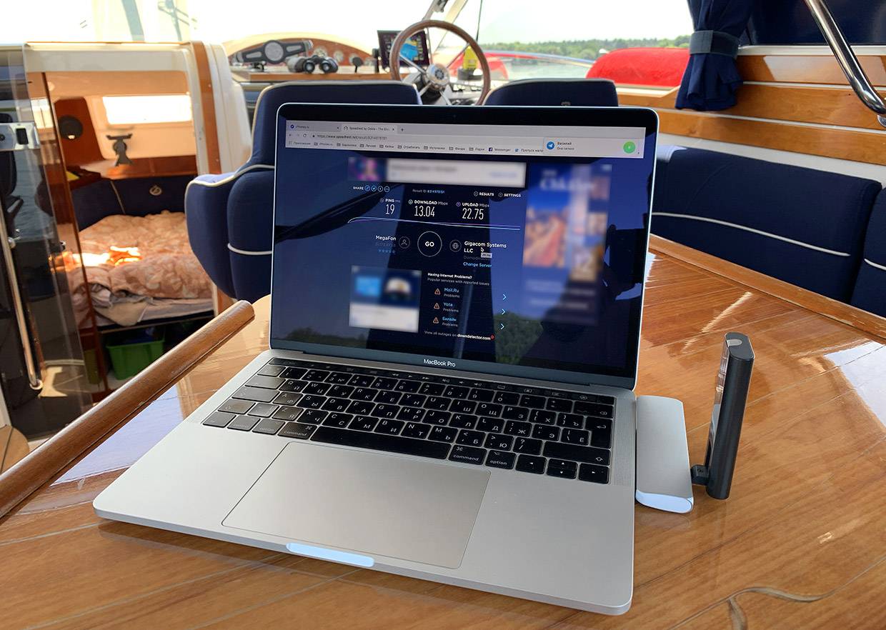 Роутер в катере годится не только как условно-обязательная вещь для музыки. Это может быть и резервный способ связи с берегом, если что-то пойдёт не так.