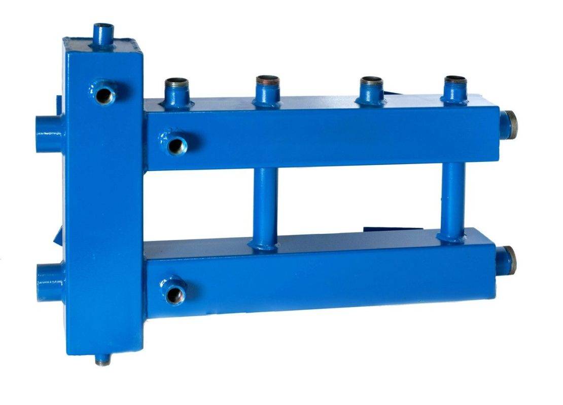 Радиаторный распределительный узел обычно состоит из двух связанных друг с другом распределительных гребенок. Первая направляет жидкость к радиаторам, вторая возвращает к котлу. Такие коллекторы, как правило, не снабжают дополнительным оборудованием и приборами, в целях экономии.