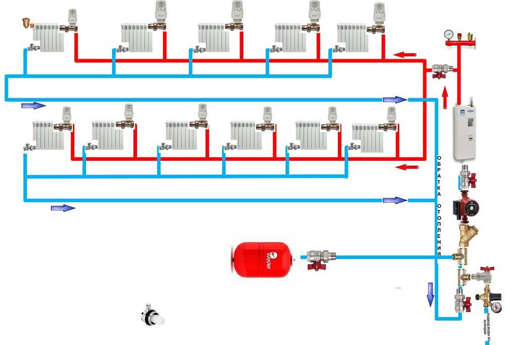 Схема двухтрубной системы отопление в частном доме своими руками