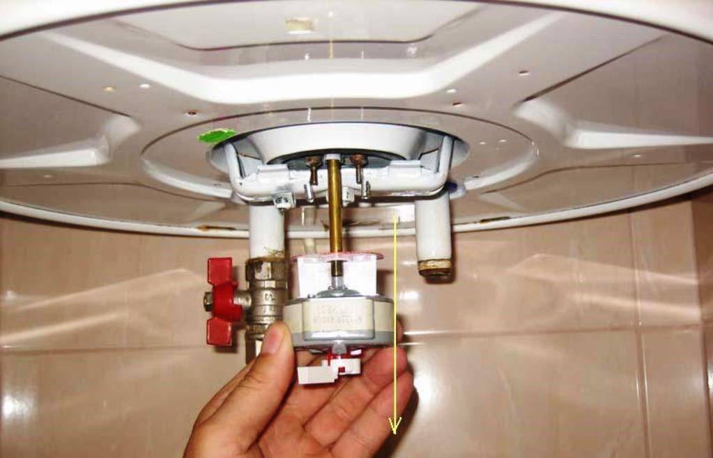 Во время очистки нагревателя осматривают магниевый анод. Если он износился и стал тонкий, то выполняют замену.