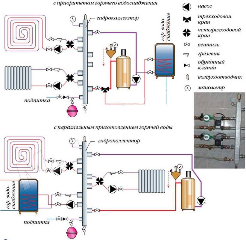 Для одновременной работы нескольких контуров необходимо приобрести и смонтировать коллектор, обеспечивающий равномерное распределение теплоносителя.