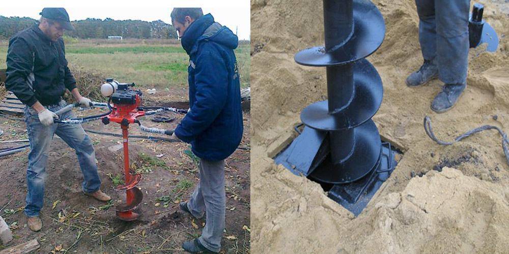 - С помощью бура, изготовленного в виде шнека. Чтобы достичь нужной глубины, бур по мере погружения наращивается новыми секциями.