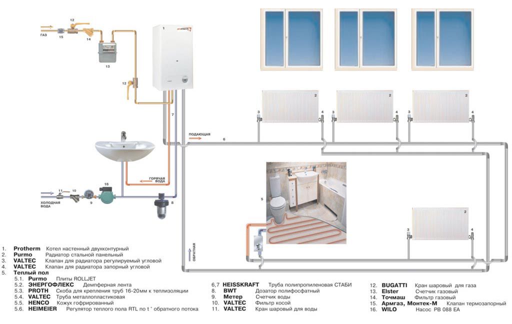 - Теплопровод. Выполняет функцию доставки теплоносителя к батареям.