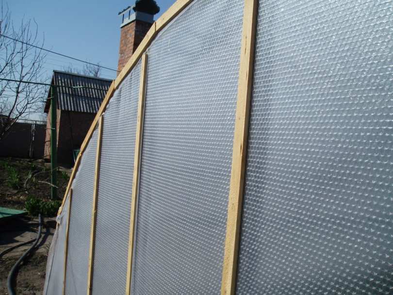 Пузырчатая пленка популярна среди дачников и садоводов, которые ценят ее за общедоступность и простоту установки при обшивке каркаса. Материал обладает всеми достоинствами традиционной полиэтиленовой пленки, но существенно превосходит его по прочности, долговечности и теплоизоляции.