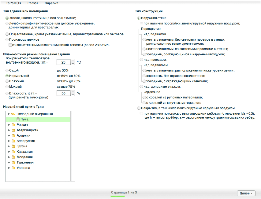 Теплотехнический расчет наружной стены, программа упрощает вычисления