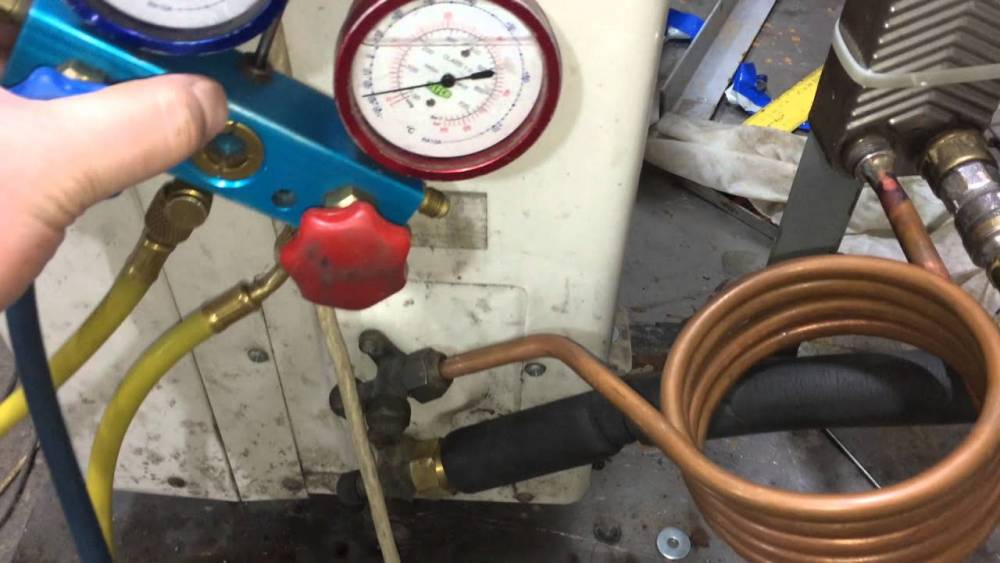 После окончания монтажа необходимо заполнить систему хладагентом. Данную работу лучше всего поручить специалисту, потому что для заправки внутреннего контура фреоном применяются специальные приборы. При заполнении нужно замерить давление и температуру на входе компрессора и на выходе.
